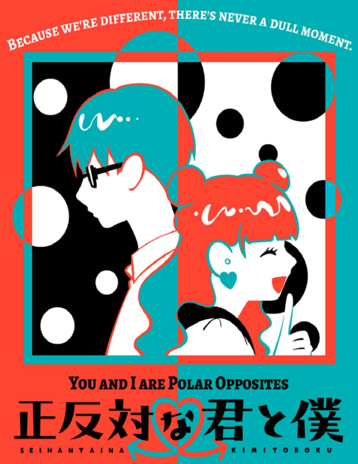 Dans Toi et moi sommes des opposés polaires, pour le premier chapitre, nous suivons Suzuki, qui, bien qu’elle ait déclaré à haute voix les types de préférences qu’elle aime chez un garçon, a le béguin pour Tani – mais ressentant une certaine pression sociale de la part de ses amis, ne veut pas l’admettre. Mais un jour, elle finit par le rencontrer après l’école, ils rentrent ensuite maladroitement à la maison ensemble, et après une expérience de prise de main accidentelle, ils sont épuisés émotionnellement. Après s’être ensuite présentée en retard à l’école, ses amis lui demandent si elle sort avec Tani. Elle le nie bientôt, juste au moment où Tani se présente… et elle se sent écrasée toute la journée. Et puis à la fin de la journée d’école, Tani dit alors d’oublier ce qui s’est passé hier.